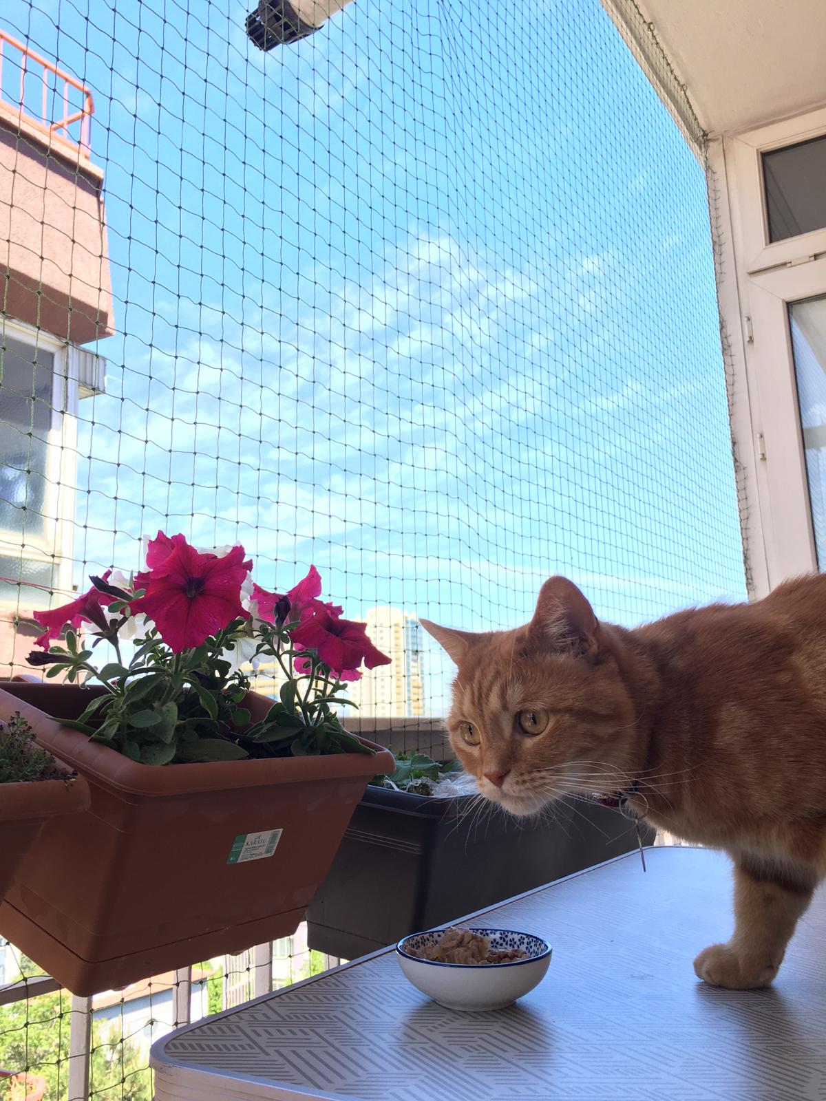 Winblock Pet Cat Eating Near Balcony Portrait