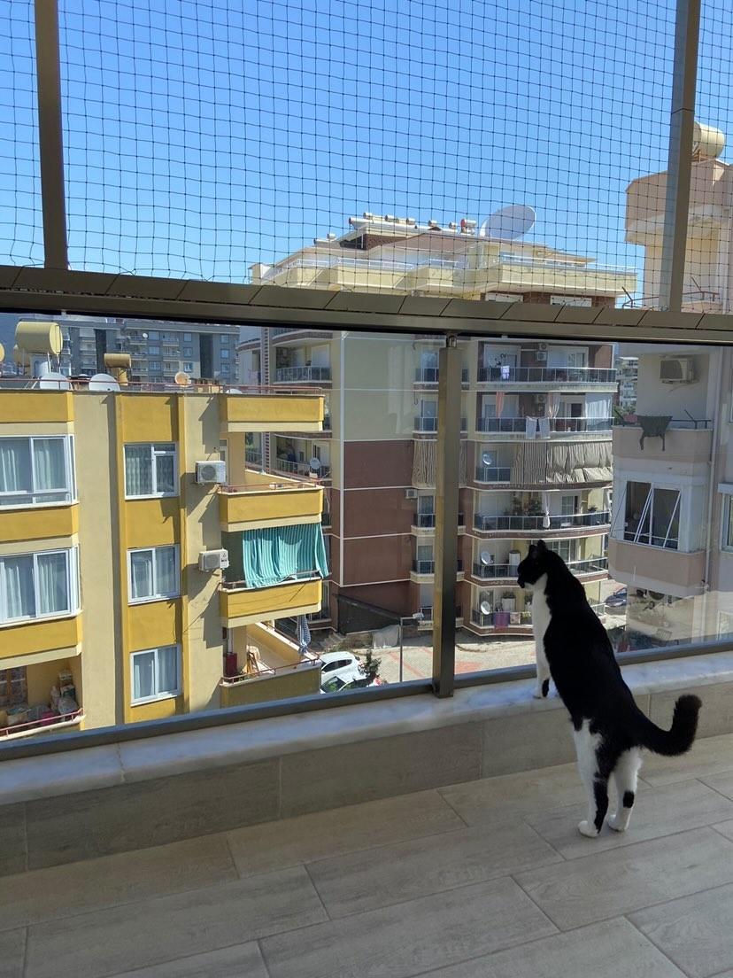 Winblock Pet Cat Looking Out Balcony Portrait