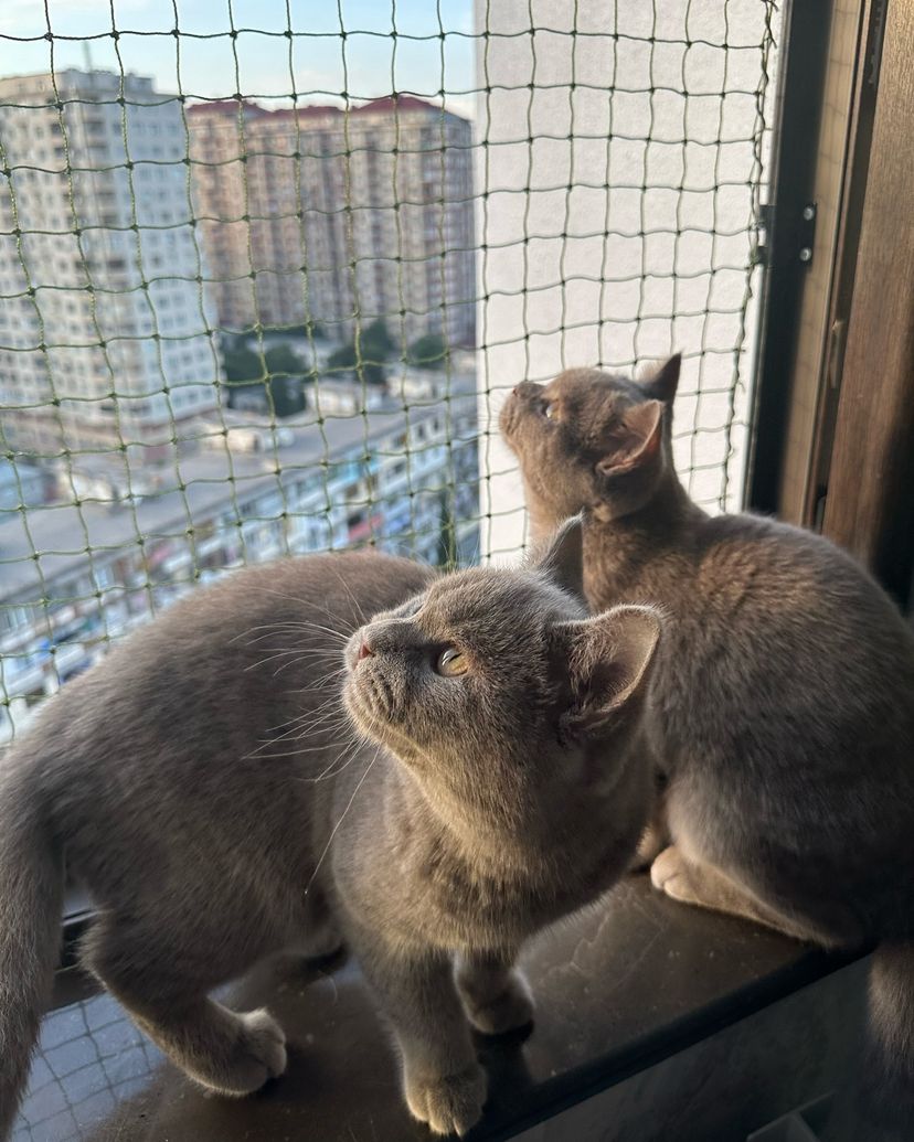 Winblock Two Pet Cats Sitting Near Window Portrait